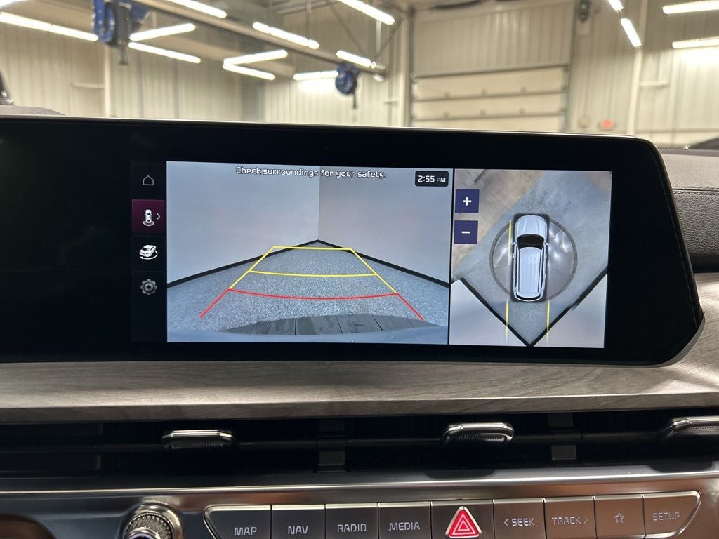 10 Speakers, 3rd row seats: split-bench, 4-Wheel Disc Brakes, ABS brakes, Air Conditioning, AM/FM radio: SiriusXM, Apple CarPlay & Android Auto, Auto High-beam Headlights, Auto-dimming Rear-View mirror, Auto-leveling suspension, Automatic temperature control, Black Wheel Locks, Brake assist, Bumpers: body-color, Carpeted Floor Mats, Compass, Custom Wheels, Delay-off headlights, Driver door bin, Driver vanity mirror, Dual front impact airbags, Dual front side impact airbags, Electronic Stability Control, Emergency communication system: 911 Connect, Exterior Parking Camera Rear, Four wheel independent suspension, Front anti-roll bar, Front Bucket Seats, Front Center Armrest, Front dual zone A/C, Front fog lights, Front reading lights, Fully automatic headlights, Garage door transmitter: HomeLink, harman/kardon® Speakers, Heated & Ventilated Front Bucket Seats, Heated door mirrors, Heated front seats, Heated steering wheel, Illuminated entry, Knee airbag, Leather Seat Trim, Leather Shift Knob, Leather steering wheel, Low tire pressure warning, Memory seat, Navigation System, Occupant sensing airbag, Outside temperature display, Overhead airbag, Overhead console, Panic alarm, Passenger door bin, Passenger vanity mirror, Power door mirrors, Power driver seat, Power Liftgate, Power moonroof, Power passenger seat, Power steering, Power windows, Radio data system, Radio: AM/FM Harman Kardon Audio System, Rear air conditioning, Rear anti-roll bar, Rear audio controls, Rear reading lights, Rear side impact airbag, Rear window defroster, Rear window wiper, Reclining 3rd row seat, Remote keyless entry, Security system, Speed control, Speed-sensing steering, Split folding rear seat, Spoiler, Steering wheel mounted audio controls, Tachometer, Telescoping steering wheel, Terracotta Interior Color Package, Tilt steering wheel, Traction control, Trip computer, Turn signal indicator mirrors, Variably intermittent wipers, Ventilated front seats, Wheels: 20 x 7.5 Black Finish X-LINE Exclusive. 2025 Kia Telluride SX X-Line