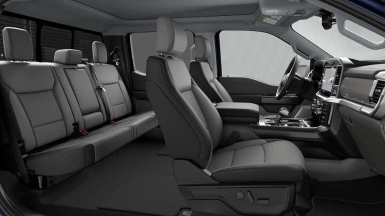 4WD, 2nd Row Heated Seats, 4 Pickup Box Tie-Down Plates, 4-Wheel Disc Brakes, 4x4 FX4 Off-Road Bodyside Decal, 8 Speakers, ABS brakes, Air Conditioning, AM/FM radio: SiriusXM with 360L, Ambient Lighting - Ice Blue Color Only, Auto High-beam Headlights, Auto-dimming door mirrors, Auto-dimming Rear-View mirror, Automatic temperature control, Bed Storage Boxes, Bed Utility Package, Brake assist, Bumpers: chrome, Chrome wheels, Compass, Console Worksurface, Custom Wheels, Delay-off headlights, Driver door bin, Driver vanity mirror, Driver's Side SecuriCode Keyless-Entry Keypad, Dual front impact airbags, Dual front side impact airbags, Electronic Stability Control, Emergency communication system: SYNC 4 911 Assist, Equipment Group 502A High, Ford Connectivity Package (1-Year Included), Front anti-roll bar, Front Bucket Seats, Front Center Armrest, Front dual zone A/C, Front fog lights, Front License Plate Bracket, Front reading lights, Front wheel independent suspension, Fully automatic headlights, FX4 Off-Road Package, Garage door transmitter, Head-Up Display, Heated door mirrors, Heated front seats, Heated steering wheel, Hill Descent Control, Illuminated Driver and Passenger Visors, Illuminated entry, Integrated Trailer Brake Controller, Internet access capable: 5G Modem - Ford Connectivity Package, LED Box Lighting, Low tire pressure warning, Memory seat, Mobile Office Package, Monotube Rear Shocks, Navigation system: Connected Navigation, Occupant sensing airbag, Off-Road Tuned Front Shock Absorbers, Outside temperature display, Overhead airbag, Overhead console, Panic alarm, Partitioned Lockable Rear Storage, Passenger door bin, Passenger vanity mirror, Power door mirrors, Power driver seat, Power passenger seat, Power steering, Power windows, Power-Adjustable Pedals with Memory, Power-Sliding Rear Window, Radio data system, Radio: B&O Sound System by Bang and Olufsen, Radio: B&O Unleashed Sound System by Bang & Olufsen, Rain sensing wipers, Rear reading lights, Rear seat center armrest, Rear step bumper, Rear window defroster, Remote keyless entry, Security system, Speed control, Split folding rear seat, Steering wheel mounted audio controls, SYNC 4 with Enhanced Voice Recognition, Tachometer, Tailgate Step with Work Surface, Telescoping steering wheel, Tilt steering wheel, Tough Bed Spray-in Bedliner, Tow/Haul Package, Traction control, Tray Style Floor Liner Without Carpet Mats, Trip computer, Turn signal indicator mirrors, Twin Panel Moonroof, Variably intermittent wipers, Ventilated front seats, Wheels: 18 Chrome-Like PVD, Wheels: 20 Chrome-Like PVD, Wireless Charging, 4WD. 2026 Ford F-150 Lariat