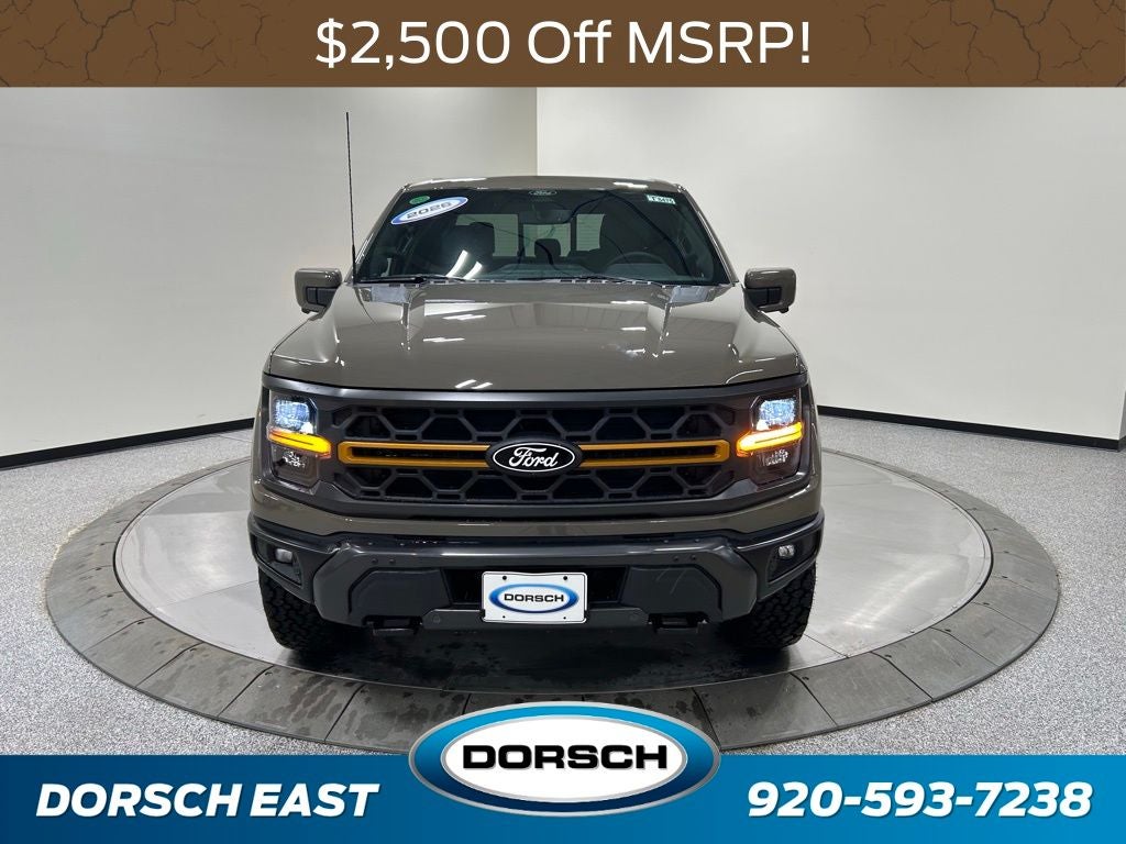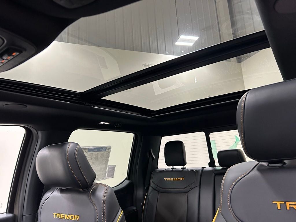 4WD, 2nd Row Heated Seats, 4 Pickup Box Tie-Down Plates, Auto-Dimming Rear-View Mirror, Bed Utility Package, Console Worksurface, Electronic Locking with 3.73 Axle Ratio, Equipment Group 402A High, Ford Connectivity Package (1-Year Included), Front Axle with Torsen Differential, GVWR: 7,050 lbs Payload Package, Heated Steering Wheel, Integrated Trailer Brake Controller, Internet access capable: 5G Modem - Ford Connectivity Package, LED Box Lighting, LED Taillamps, Media Bin Door, Mobile Office Package, Modular Front Bumper and Carbon Black Rear Bumper, Navigation system: Connected Navigation, Partitioned Lockable Rear Storage, Power Glass Heated Sideview Mirrors, Power Tailgate, Power-Adjustable Pedals with Memory, Radio: B&O Unleashed Sound System by Bang & Olufsen, Rain-Sensing Wipers, Tow/Haul Package, Unique Tremor Leather-Trimmed Seats, Universal Garage Door Opener, Wheels: 18 Alloy with Dark Matte Finish, Wireless Charging, 4-Wheel Disc Brakes, 8 Speakers, ABS brakes, Adjustable pedals, Air Conditioning, AM/FM radio: SiriusXM with 360L, Auto High-beam Headlights, Auto-dimming Rear-View mirror, Automatic temperature control, Brake assist, Bumpers: body-color, Compass, Custom Wheels, Delay-off headlights, Driver door bin, Driver vanity mirror, Driver's Side SecuriCode Keyless-Entry Keypad, Dual front impact airbags, Dual front side impact airbags, Electronic Stability Control, Emergency communication system: SYNC 4 911 Assist, Front anti-roll bar, Front Bucket Seats, Front Center Armrest, Front dual zone A/C, Front fog lights, Front License Plate Bracket, Front reading lights, Front wheel independent suspension, Fully automatic headlights, Heated door mirrors, Heated front seats, Illuminated entry, Low tire pressure warning, Occupant sensing airbag, Outside temperature display, Overhead airbag, Overhead console, Panic alarm, Passenger door bin, Passenger vanity mirror, Power door mirrors, Power driver seat, Power passenger seat, Power steering, Power windows, Radio data system, Radio: B&O Sound System by Bang and Olufsen, Rear reading lights, Rear step bumper, Rear window defroster, Remote keyless entry, Security system, Speed control, Split folding rear seat, Steering wheel mounted audio controls, SYNC 4 with Enhanced Voice Recognition, Tachometer, Tailgate Step with Work Surface, Telescoping steering wheel, Tilt steering wheel, Traction control, Tray Style Floor Liner with Carpet Mats, Trip computer, Turn signal indicator mirrors, Twin Panel Moonroof, Unique Sport Cloth 40/Console/40 Power Front Seat, Variably intermittent wipers, 4WD, 2nd Row Heated Seats, 4 Pickup Box Tie-Down Plates, Auto-Dimming Rear-View Mirror, Bed Utility Package, Console Worksurface, Electronic Locking with 3.73 Axle Ratio, Equipment Group 402A High, Ford Connectivity Package (1-Year Included), Front Axle with Torsen Differential, GVWR: 7,050 lbs Payload Package, Heated Steering Wheel, Integrated Trailer Brake Controller, Internet access capable: 5G Modem - Ford Connectivity Package, LED Box Lighting, LED Taillamps, Media Bin Door, Mobile Office Package, Modular Front Bumper and Carbon Black Rear Bumper, Navigation system: Connected Navigation, Partitioned Lockable Rear Storage, Power Glass Heated Sideview Mirrors, Power Tailgate, Power-Adjustable Pedals with Memory, Radio: B&O Unleashed Sound System by Bang & Olufsen, Rain-Sensing Wipers, Tow/Haul Package, Unique Tremor Leather-Trimmed Seats, Universal Garage Door Opener, Wheels: 18 Alloy with Dark Matte Finish, Wireless Charging. 2026 Ford F-150 Tremor