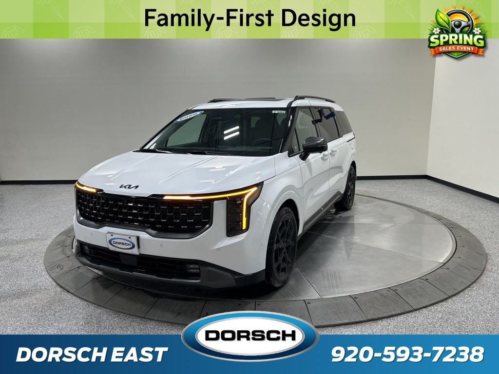 12 Speakers, 2nd Row Laminated Windows, 3.51 Axle Ratio, 3rd row seats: split-bench, 4-Wheel Disc Brakes, ABS brakes, Air Conditioning, AM/FM radio: SiriusXM, Ambient Lighting, Apple CarPlay & Android Auto, Auto High-beam Headlights, Auto-dimming Rear-View mirror, Automatic temperature control, Brake assist, Bumpers: body-color, Compass, Custom Wheels, Delay-off headlights, Driver door bin, Driver vanity mirror, Dual front impact airbags, Dual front side impact airbags, Electronic Stability Control, Emergency communication system, Exterior Parking Camera Rear, Four wheel independent suspension, Front anti-roll bar, Front Bucket Seats, Front Center Armrest, Front dual zone A/C, Front fog lights, Front reading lights, Fully automatic headlights, Garage door transmitter: HomeLink, Heads-Up Display, Heated and Ventilated Front Bucket Seats, Heated door mirrors, Heated front seats, Heated steering wheel, Heated/Ventilated 2nd Row Power Seats, High Glossy Interior Trim, Illuminated entry, Illuminated Rear Cargo Panel, Knee airbag, Leather Shift Knob, Leather steering wheel, Low tire pressure warning, Luxury Carpeted Floor Mats, Memory seat, Navigation System, Occupant sensing airbag, Outside temperature display, Overhead airbag, Overhead console, Panic alarm, Passenger door bin, Passenger vanity mirror, Power 2nd-Row Moonroof, Power door mirrors, Power driver seat, Power Liftgate, Power moonroof, Power passenger seat, Power steering, Power windows, Pure Leather Seat Trim, Radio: AM/FM/HD Audio System, Rain sensing wipers, Rear air conditioning, Rear anti-roll bar, Rear reading lights, Rear window defroster, Rear window wiper, Reclining 3rd row seat, Remote keyless entry, Security system, Speed control, Speed-sensing steering, Split folding rear seat, Spoiler, Steering wheel mounted audio controls, SX Prestige Seat Package, Tachometer, Telescoping steering wheel, Tilt steering wheel, Traction control, Trip computer, Turn signal indicator mirrors, Variably intermittent wipers, Ventilated front seats, Wheels: 7.5J x 19 Alloy Dark Edition. 18/26 City/Highway MPG 2026 Kia Carnival SX Prestige