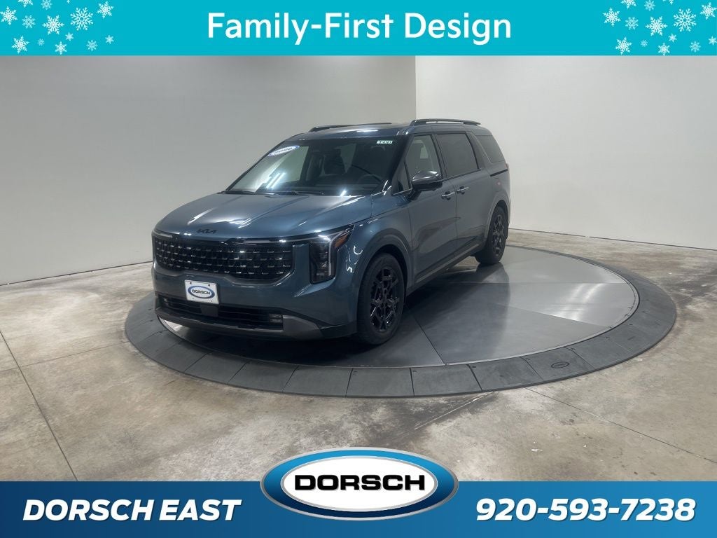 3.51 Axle Ratio, 3rd row seats: split-bench, 4-Wheel Disc Brakes, 8 Speakers, ABS brakes, Air Conditioning, AM/FM radio: SiriusXM, Apple CarPlay & Android Auto, Artificial Leather Seat Trim, Auto High-beam Headlights, Automatic temperature control, Brake assist, Bumpers: body-color, Cargo Tray, Carpeted Floor Mats (8-Passenger), Compass, Custom Wheels, Dark Edition Front Grille Trim, Dark Edition Mirror Caps, Delay-off headlights, Driver door bin, Driver vanity mirror, Dual front impact airbags, Dual front side impact airbags, Electronic Stability Control, Emergency communication system, Exterior Parking Camera Rear, Four wheel independent suspension, Front anti-roll bar, Front Bucket Seats, Front Center Armrest, Front dual zone A/C, Front fog lights, Front reading lights, Fully automatic headlights, Heated door mirrors, Heated front seats, Illuminated entry, Knee airbag, Leather Shift Knob, Leather steering wheel, Low tire pressure warning, Memory seat, Mud Guards, Navigation System, Occupant sensing airbag, Outside temperature display, Overhead airbag, Overhead console, Panic alarm, Passenger door bin, Passenger vanity mirror, Power 2nd-Row Moonroof, Power door mirrors, Power driver seat, Power Liftgate, Power moonroof, Power passenger seat, Power steering, Power windows, Radio: AM/FM/HD Audio System, Rain sensing wipers, Rear air conditioning, Rear anti-roll bar, Rear reading lights, Rear window defroster, Rear window wiper, Reclining 3rd row seat, Remote keyless entry, Security system, Speed control, Speed-sensing steering, Split folding rear seat, Spoiler, Steering wheel mounted audio controls, SX Dark Edition Package, Tachometer, Telescoping steering wheel, Tilt steering wheel, Traction control, Trip computer, Turn signal indicator mirrors, Variably intermittent wipers, Ventilated front seats, Wheels: 7.5J x 19 Alloy Dark Edition, Wheels: 7.5J x 19 Black Alloy. 18/26 City/Highway MPG 2026 Kia Carnival SX