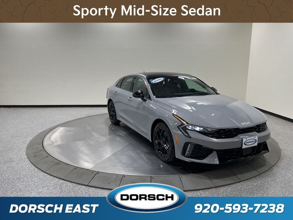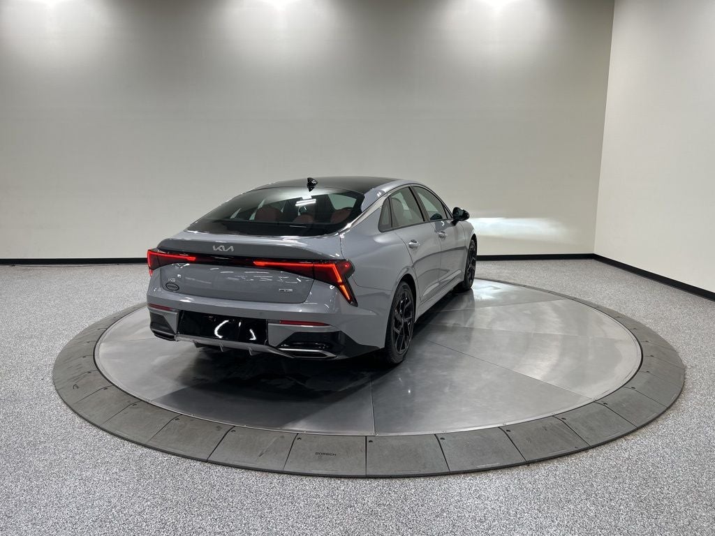4-Wheel Disc Brakes, 6 Speakers, ABS brakes, Active Sound Design, Air Conditioning, AM/FM radio: SiriusXM, Apple CarPlay & Android Auto, Auto High-beam Headlights, Automatic temperature control, Bose Premium Audio, Brake assist, Bumpers: body-color, Carpeted Floor Mats, Custom Wheels, Delay-off headlights, Driver door bin, Driver vanity mirror, Dual front impact airbags, Dual front side impact airbags, Electronic Stability Control, Emergency communication system: Kia Connect (includes 1 year free trial), Four wheel independent suspension, Front anti-roll bar, Front Bucket Seats, Front Center Armrest, Front dual zone A/C, Front fog lights, Front reading lights, Fully automatic headlights, GT-Line Premium Package, GT-Line Red Interior Package, Heated door mirrors, Heated Front Bucket Seats, Heated front seats, Heated steering wheel, Illuminated entry, Knee airbag, Leather Shift Knob, Leather steering wheel, LED Interior Lighting, Low tire pressure warning, Navigation System, Occupant sensing airbag, Outside temperature display, Overhead airbag, Overhead console, Panic alarm, Panoramic Sunroof, Passenger door bin, Passenger vanity mirror, Power door mirrors, Power driver seat, Power steering, Power windows, Radio data system, Radio: AM/FM Audio System, Rear anti-roll bar, Rear seat center armrest, Rear side impact airbag, Rear window defroster, Remote keyless entry, Security system, Small First Aid Kit, Speed control, Speed-sensing steering, Split folding rear seat, Sport steering wheel, Steering wheel mounted audio controls, SynTex Seat Trim, Tachometer, Telescoping steering wheel, Tilt steering wheel, Traction control, Trip computer, Turn signal indicator mirrors, Variably intermittent wipers, Wheels: 18 x 7.5J Gloss Black Machined Finish Alloy, Wheels: 18 x 7.5J Unique Gloss Black Alloy. 24/33 City/Highway MPG 2026 Kia K5 GT-Line