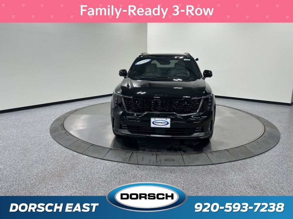 1.6L Turbo GDI 4-Cylinder, 12 Speakers, 3rd row seats: split-bench, 4-Wheel Disc Brakes, ABS brakes, Air Conditioning, AM/FM radio: SiriusXM, Apple CarPlay & Android Auto, Auto High-beam Headlights, Auto-dimming Rear-View mirror, Automatic temperature control, Brake assist, Bumpers: body-color, Cargo Tray, Carpeted Floor Mats, Custom Wheels, Delay-off headlights, Driver door bin, Driver vanity mirror, Dual front impact airbags, Dual front side impact airbags, Electronic Stability Control, Emergency communication system: 911 Connect, Exterior Parking Camera Rear, Four wheel independent suspension, Front anti-roll bar, Front Bucket Seats, Front Center Armrest, Front dual zone A/C, Front fog lights, Front reading lights, Fully automatic headlights, Garage door transmitter: HomeLink, Heated door mirrors, Heated front seats, Heated rear seats, Heated steering wheel, Illuminated entry, Knee airbag, Leather steering wheel, Low tire pressure warning, Memory seat, Mudguards, Navigation System, Occupant sensing airbag, Outside temperature display, Overhead airbag, Overhead console, Panic alarm, Passenger door bin, Passenger vanity mirror, Perforated Genuine Leather Seat Trim, Power door mirrors, Power driver seat, Power Liftgate, Power moonroof, Power passenger seat, Power steering, Power windows, Radio data system, Radio: AM/FM/SiriusXM Audio System, Rain sensing wipers, Rear anti-roll bar, Rear reading lights, Rear side impact airbag, Rear window defroster, Rear window wiper, Remote keyless entry, Security system, Speed control, Speed-sensing steering, Split folding rear seat, Spoiler, Steering wheel mounted audio controls, Tachometer, Telescoping steering wheel, Tilt steering wheel, Traction control, Trip computer, Turn signal indicator mirrors, Variably intermittent wipers, Ventilated front seats, Wheels: 19 Machine-Finished Aero Alloy, 1.6L Turbo GDI 4-Cylinder. New Price! Priced below KBB Fair Purchase Price! 32/35 City/Highway MPG 2026 Kia Sorento Hybrid X-Line SX Prestige Price includes: $2000 - Kia Customer Cash. Exp. 03/02/2026