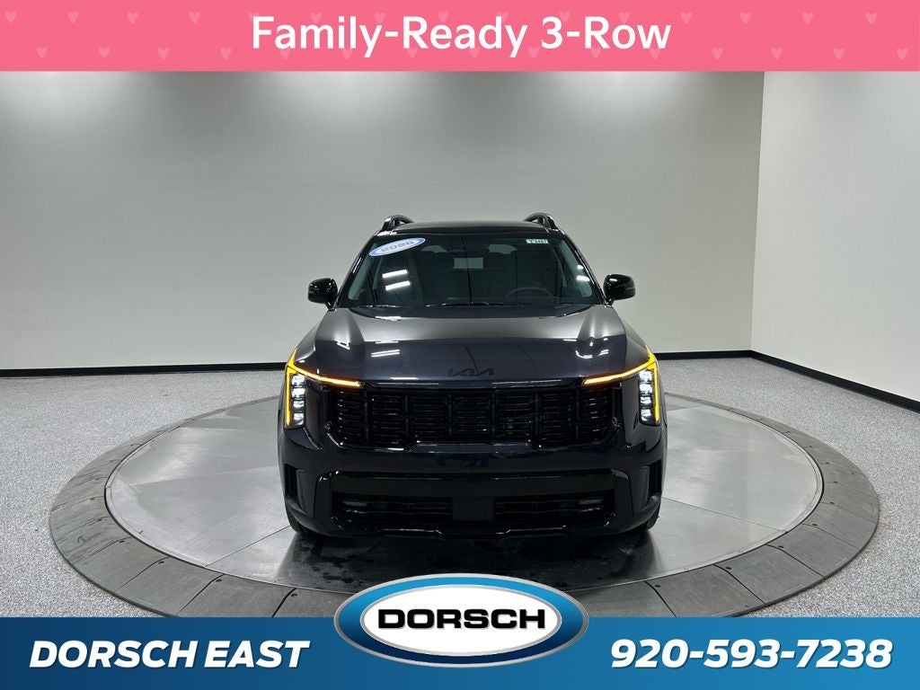 AWD, 3rd row seats: split-bench, 4-Wheel Disc Brakes, ABS brakes, Air Conditioning, All Weather Floor Mats, AM/FM radio: SiriusXM, Apple CarPlay & Android Auto, Auto High-beam Headlights, Auto-dimming Rear-View mirror, Automatic temperature control, Brake assist, Bumpers: body-color, Custom Wheels, Delay-off headlights, Driver door bin, Driver vanity mirror, Dual front impact airbags, Dual front side impact airbags, Electronic Stability Control, Emergency communication system: 911 Connect, Exterior Parking Camera Rear, Four wheel independent suspension, Front anti-roll bar, Front Bucket Seats, Front Center Armrest, Front dual zone A/C, Front fog lights, Front reading lights, Fully automatic headlights, Heated door mirrors, Heated Front Bucket Seats, Heated front seats, Illuminated entry, Knee airbag, Leather Shift Knob, Leather steering wheel, Low tire pressure warning, Navigation System, Occupant sensing airbag, Outside temperature display, Overhead airbag, Overhead console, Panic alarm, Passenger door bin, Passenger vanity mirror, Power door mirrors, Power driver seat, Power Liftgate, Power passenger seat, Power steering, Power windows, Radio data system, Radio: AM/FM Standard Sound System, Rear anti-roll bar, Rear reading lights, Rear side impact airbag, Rear window defroster, Rear window wiper, Remote keyless entry, Security system, Speed control, Speed-sensing steering, Split folding rear seat, Spoiler, Steering wheel mounted audio controls, SynTex Artificial Leather Seat Trim, Tachometer, Telescoping steering wheel, Tilt steering wheel, Traction control, Trip computer, Turn signal indicator mirrors, Variably intermittent wipers, AWD. 20/27 City/Highway MPG 2026 Kia Sorento EX Price includes: $2000 - Kia Customer Cash. Exp. 03/02/2026