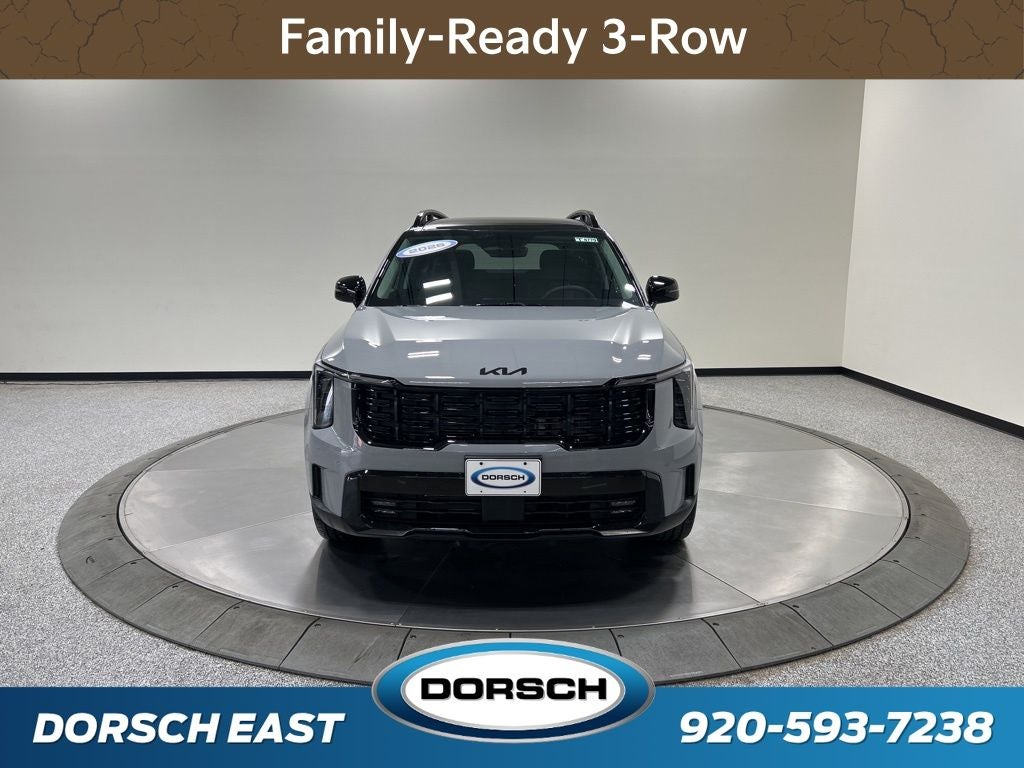 AWD, 12 Speakers, 3rd row seats: split-bench, 4-Wheel Disc Brakes, ABS brakes, Air Conditioning, AM/FM radio: SiriusXM, Apple CarPlay & Android Auto, Auto High-beam Headlights, Auto-Dimming Mirror with HomeLink (PnP), Auto-dimming Rear-View mirror, Automatic temperature control, Brake assist, Bumpers: body-color, Carpeted Floor Mats, Custom Wheels, Delay-off headlights, Driver door bin, Driver vanity mirror, Dual front impact airbags, Dual front side impact airbags, Electronic Stability Control, Emergency communication system: 911 Connect, Exterior Parking Camera Rear, Four wheel independent suspension, Front anti-roll bar, Front Bucket Seats, Front Center Armrest, Front dual zone A/C, Front fog lights, Front reading lights, Fully automatic headlights, Heated door mirrors, Heated Front Bucket Seats, Heated front seats, Illuminated entry, Knee airbag, Leather Shift Knob, Leather steering wheel, Low tire pressure warning, Navigation System, Occupant sensing airbag, Outside temperature display, Overhead airbag, Overhead console, Panic alarm, Passenger door bin, Passenger vanity mirror, Power door mirrors, Power driver seat, Power Liftgate, Power moonroof, Power passenger seat, Power steering, Power windows, Radio data system, Radio: AM/FM Standard Sound System, Rear anti-roll bar, Rear reading lights, Rear side impact airbag, Rear window defroster, Rear window wiper, Remote keyless entry, Security system, Speed control, Speed-sensing steering, Split folding rear seat, Spoiler, Steering wheel mounted audio controls, SynTex Artificial Leather Seat Trim, Tachometer, Telescoping steering wheel, Tilt steering wheel, Tow Hitch, Traction control, Trip computer, Turn signal indicator mirrors, Variably intermittent wipers, Wheels: 20 x 8.5J Gloss Black X-Line Alloy, AWD. 20/27 City/Highway MPG 2026 Kia Sorento X-Line EX Price includes: $2500 - Kia Customer Cash. Exp. 05/04/2026