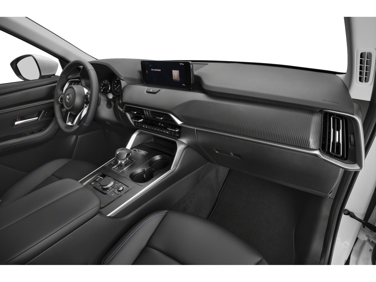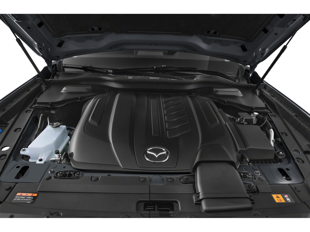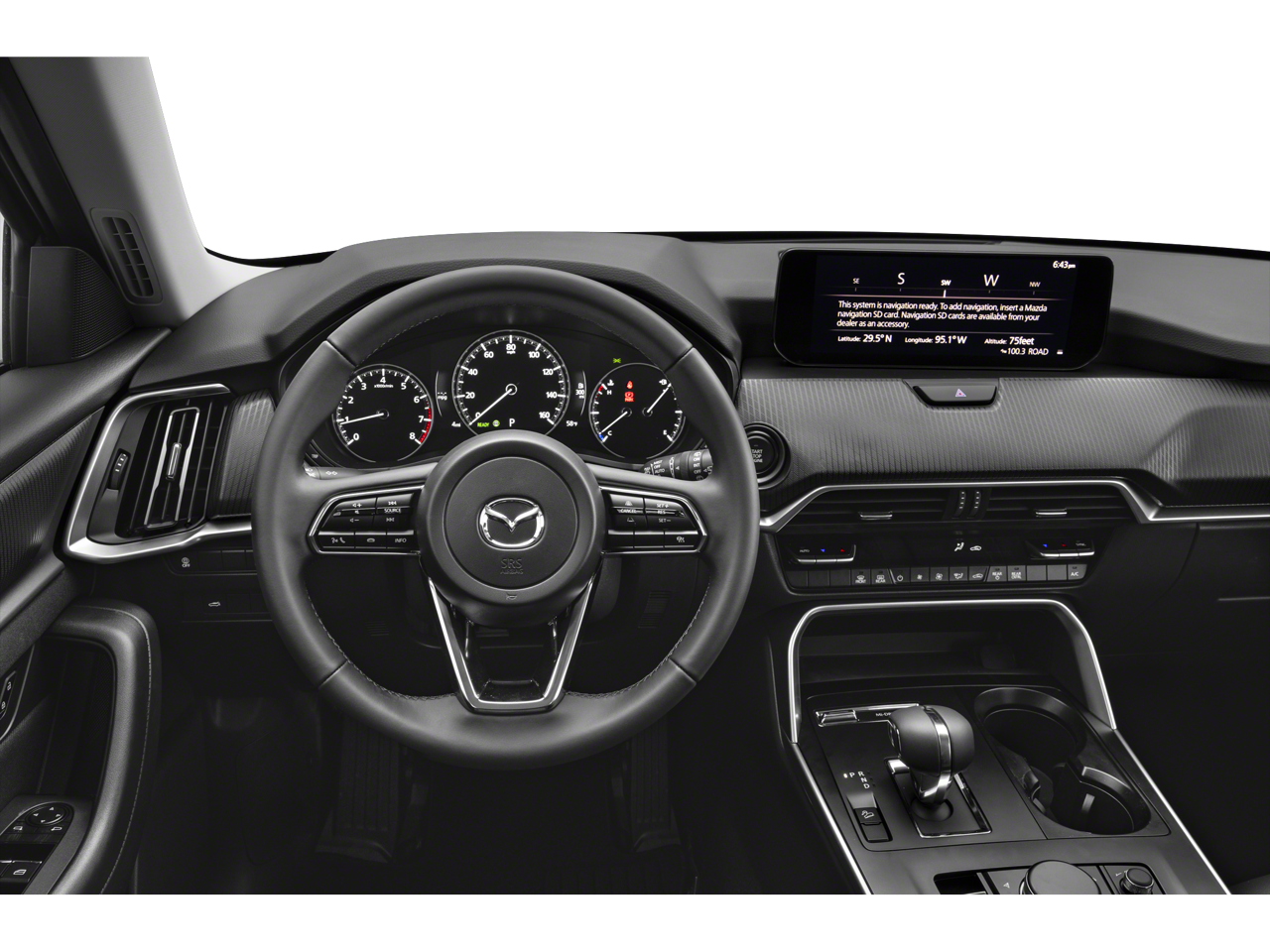 3.692 Axle Ratio, 3rd row seats: bench, 4-Wheel Disc Brakes, 8 Speakers, ABS brakes, Air Conditioning, AM/FM radio, AppLink/Apple CarPlay and Android Auto, Auto High-beam Headlights, Automatic temperature control, Brake assist, Bumpers: body-color, Compass, Custom Wheels, Delay-off headlights, Driver door bin, Driver vanity mirror, Dual front impact airbags, Dual front side impact airbags, E911 Automatic Emergency Notification, Electronic Stability Control, Emergency communication system: MAZDA CONNECT, Exterior Parking Camera Rear, Four wheel independent suspension, Front anti-roll bar, Front Bucket Seats, Front Center Armrest w/Storage, Front dual zone A/C, Front reading lights, Fully automatic headlights, Heated door mirrors, Illuminated entry, Infotainment System Voice Command, Knee airbag, Leather Shift Knob, Leather steering wheel, Leatherette Seat Trim, Low tire pressure warning, Mazda Connected Services, Occupant sensing airbag, Outside temperature display, Overhead airbag, Overhead console, Pandora Internet Radio Integration, Panic alarm, Passenger door bin, Passenger vanity mirror, Power door mirrors, Power driver seat, Power Liftgate, Power steering, Power windows, Radio Broadcast Data System Program Information, Radio data system, Radio: AM/FM Sound System, Rain sensing wipers, Rear air conditioning, Rear anti-roll bar, Rear reading lights, Rear seat center armrest, Rear window defroster, Rear window wiper, Remote keyless entry, SMS Text Msg Audio Delivery & Reply, Speed control, Speed-sensing steering, Split folding rear seat, Spoiler, Steering wheel mounted audio controls, Tachometer, Telescoping steering wheel, Tilt steering wheel, Traction control, Trip computer, Turn signal indicator mirrors, Variably intermittent wipers, Wheels: 19 x 8.5J Aluminum Alloy. 24/28 City/Highway MPG